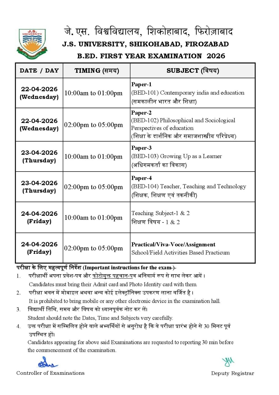 | 17 | B.Ed. First Year Examination 2026 | View |