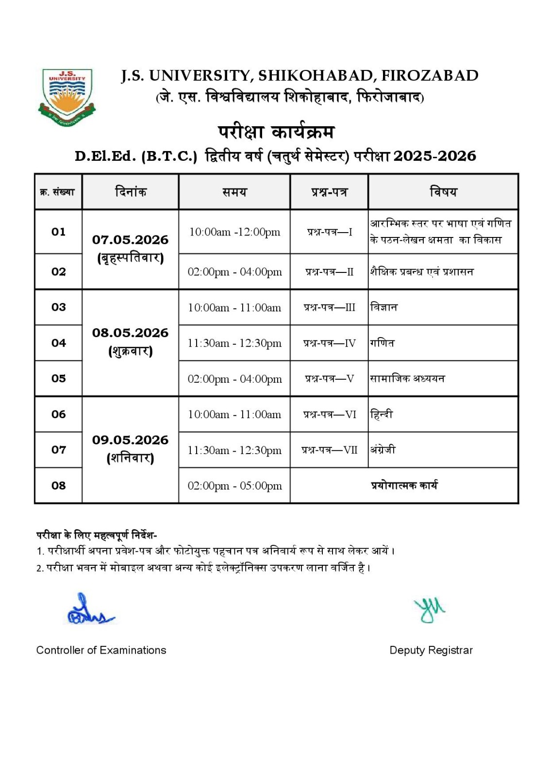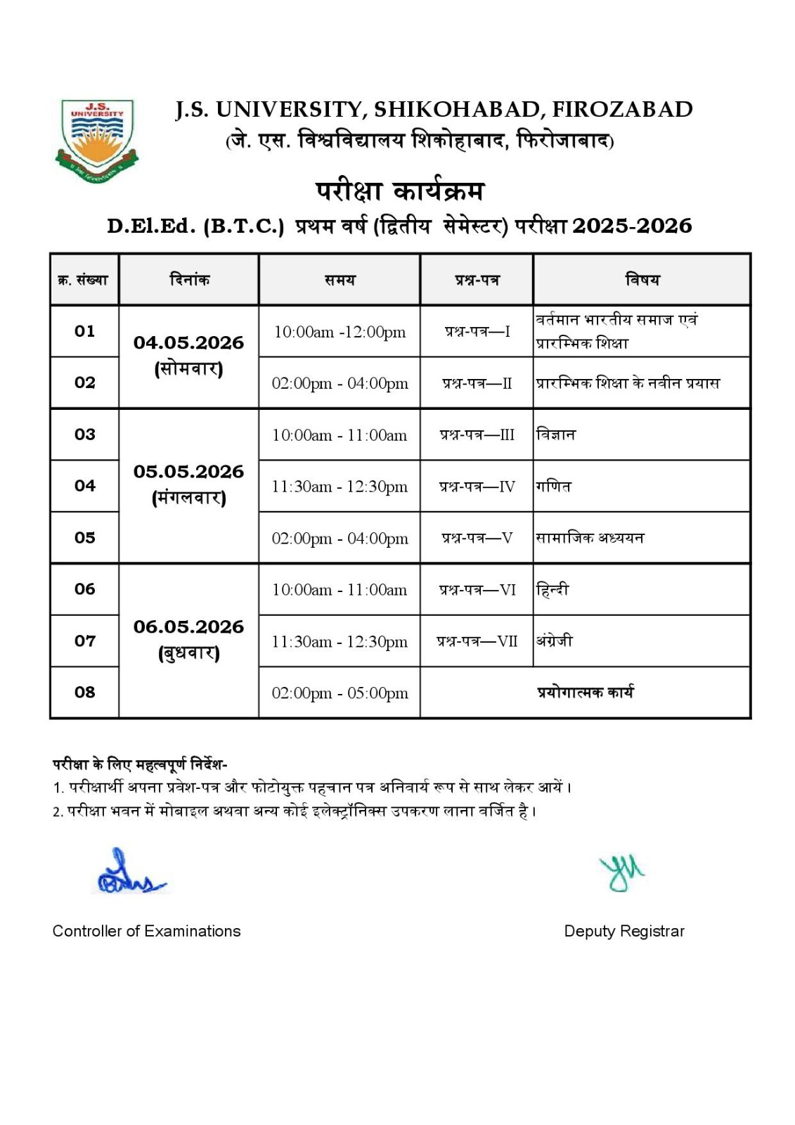 | 19 | D.El.Ed (B.T.C) First Year Second Semester Exam 2025-2026 | View |