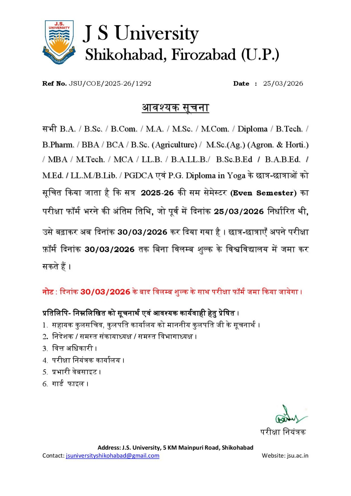 | 14 | Regarding extension of exam form date of even semester exam 2025-26 | View |