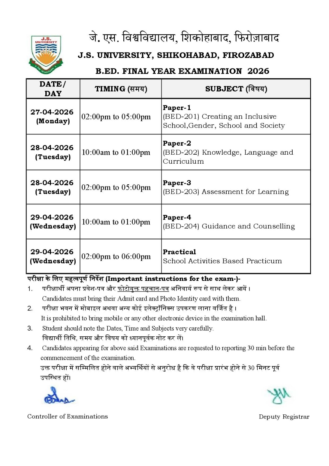 | 18 | B.Ed. Final Year Examination 2026 | View |